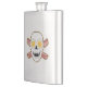 The product is a good size and came exactly as it was pictured. The lid is not attached to the flask, which could be dangerous on drunken nights... The print came out surprisingly well and looks very sharp. Would definitely recommend.