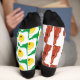Bacon and Eggs Fun Mismatched pair of socks from Ricaso - one sock features bacon, the other sock displays egg pattern. Fun novelty pattered socks.