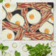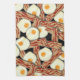 Kitchen towel featuring vector artwork of bacon and eggs pattern.