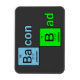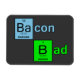 The phrase "Bacon Bad" A spoof on a popular cable show, the letters "Ba" from the word "bacon" and the letter "B" from the word "bad" have been replaced by symbols from the Periodic Table of Elements.