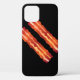 Two crispy pieces of bacon accent this iPhone case on a black background, making it perfect for the bacon lover.