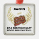 Bacon, bad for the heart, good for the soul. Bacon strips with a halo and angel wings.