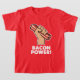 The t-shirt feels and looks great quality, a good thick cotton. It will be a little big for my son, but that means he will be able to wear it and not out grow it too soon. The print was as described on the order when personalised. True size, shape and colour T-shirt- thanks.