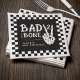 Celebrate your little one's second trip around the sun with this Bad 2 the Bone 2nd birthday party napkin. Designed in classic black and white checkerboard with skeleton hand making a peace sign, this table setting is perfect for highlighting your wild ride through the terrible twos. Personalize it with your event details for a party that will be two good to be true!