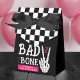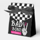 Celebrate your little girl's second trip around the sun with this Bad 2 the Bone 2nd birthday party favor box. Designed in classic black and white checkerboard and hot pink with skeleton hand making a peace sign, this box is perfect for highlighting your wild ride through the terrible twos. Personalize it with your event details for a party that will be two good to be true!