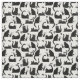 This hand drawn pattern is a compilation of furry black felines knocking various things over - coffee mugs, succulents, TV remotes and vases of flowers. A funny pattern for those who love their cats, even though they are sometimes jerks who knock stuff over.