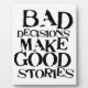 Bad Decisions Make Good Stories- funny proverb Plaque