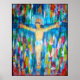 Jesus dying on the cross for us with colourful images of people/easter eggs, passing right by him. Lots of meaning here, so let your imagination go to work.