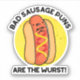 Bad Sausage Puns Are The Wurst Funny Hot Dog Pun features a cute sausage in a bun. Perfect pun gift for family and friends who love cute food puns.