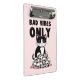Channel your edgy and sassy side with this striking clipboard featuring a fierce cat surrounded by skulls. The bold phrase 'Bad Vibes Only' adds a rebellious twist, perfect for cat lovers who embrace a dark, gothic aesthetic. This unique design is ideal for those who love combining feline charm with bold, statement-making art.