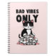 Channel your edgy and sassy side with this striking spiral notebook featuring a fierce cat surrounded by skulls. The bold phrase 'Bad Vibes Only' adds a rebellious twist, perfect for cat lovers who embrace a dark, gothic aesthetic. This unique design is ideal for those who love combining feline charm with bold, statement-making art.