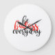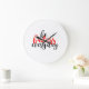 A motivational wall clock featuring a modern calligraphy in red and black.
