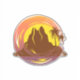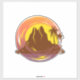 Silhouette styled landscape emblem with tropical beach palm trees and volcano island