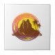 Badge with tropical volcano scenery and palm trees tile