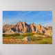 There are dramatic multi-colored layered rock formations, steep canyons and tall spires. Bison, bighorn sheep and prairie dogs live in the grasslands.