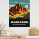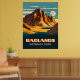 Display the clay-coloured sedimentary rocks and mountains of Badlands National Park in South Dakota.