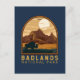Badlands vector artwork design. The park’s dramatic landscapes span layered rock formations, steep canyons and towering spires. Bison, bighorn sheep and prairie dogs inhabit its sprawling grasslands.