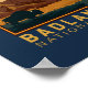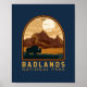 Badlands vector artwork design. The park’s dramatic landscapes span layered rock formations, steep canyons and towering spires. Bison, bighorn sheep and prairie dogs inhabit its sprawling grasslands.