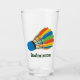 Badminton Design Drinking Glass with customisable text and background colour.