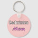 Badminton moeder. Vrolijke sleutelhanger. Kleuren: roze, wit en zwart. Leuk om als trotse moeder te dragen.