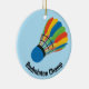 Badminton Shuttlecock Design Round Ornament. e=with customisable background colour and text, on both sides.
