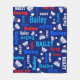 Sporty badminton shuttles on a dark blue court background originally designed text name personalised blanket. This typographical racket sports-themed patterned blanket has red, blue, and white text and can be customised with your own name, currently reads Bailey. Contact me for longer name requests. Original art and design by www.mylittleeden.com