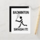 Badminton Smash It Sports Badminton Postcard designed by Nisha Prabhu. Smash your way to victory with this stylish badminton postcard! Featuring a dynamic design and high-quality printing, this postcard is perfect for showcasing your love for the sport of badminton. Whether you're a casual player or a competitive athlete, this postcard is sure to make a statement. Get your hands on one today and show off your passion for badminton in style!