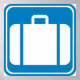 International style road and highway sign advising of a nearby baggage claim (or baggage check) location. Usually seen in airports, but could be seen on you!