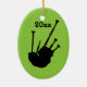 Fun bagpipes silhouette musical instrument comes on green background oval Christmas tree ornament.