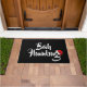 Door mat is shown in black and white with a holiday Bah Humbug and Santa hat.