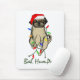 Grumpy Christmas Pug with Christmas lights wrapped around. This scrooge of a pug will delight everyone this Christmas.