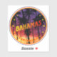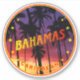 The Bahamas sticker with sunset and palmtrees, tropical summer vibes, Bahamas beach style, rounded shape.