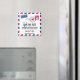 It was a bit smaller than expected, but I was too excited to check dimensions. The product itself send well printed though the grey text is a bit paint. Magnet worked perfectly on my fridge.