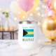 Personalised thermal wine tumbler features the Bahamian Flag and the word BAHAMAS underneath. Above, add your name, in blue letters, for a personalised touch or cool gift. Fun to use at family reunions, travel groups, and clubs. Great for Mum or Dad as a Mother's Day or Father's Day gift.