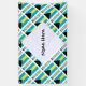 Design shows the Bahamian Flag and the word BAHAMAS underneath. Design is tiled diagonally for artistic effect. A white space of squiggly squares holds a place for a name. Personalise it for a special look or create a custom gift.
