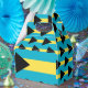 The Bahamian flag is a horizontal tricolour with a black chevron. The used colours in the flag are blue, yellow, black. The proportion of the Bahamian flag is 1:2. The Flag of the Bahamas was adopted in 1973. The first use of the current flag design was in 1973. The last change to the current Bahamian flag design was in 1973.