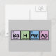 The word Bahamas is made from the elements Barium, Hydrogen, Americium and Arsenic. A fun and colourful design for people into chemistry.