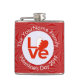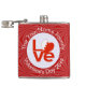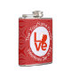 The Bahraini LOVE FLAG shows here on a hip flask. The design shows the word LOVE in red letters inside a white, fractal circle of squiggly squares. The circle sits on a red, fractal background, also of squiggly squares. Perfect gift for your man on for Valentine's Day, but can be customised for any occasion.