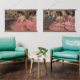 Magnificas bailarinas vestidas de tutus rosa intenso descansando en una gran sala decorada en el estilo rococó con abundantes dorados. Encantará a las personas que aman a las bailarinas, el ballet, la danza y el arte.