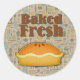 Baked Fresh words with a yummy pie underneath the words, against a vintage kitchenware background