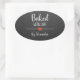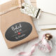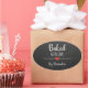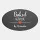 Modern "baked with love" sticker with a white font on a black chalkboard background embellished by a cute heart. Customise text.
