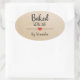Modern "baked with love" sticker with a black font on a Kraft paper background embellished by a cute red heart. Customise text.