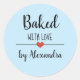 Baked with love light blue script name classic round sticker