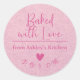 Baked with Love Pink Kraft Paper Elegant Script Classic Round Sticker