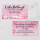 Pretty pink retro vibe business cards featuring baking or kitchen utensils - rolling pin, measuring cup, and electric beaters, plus girly flowers - perfect for a baker, bakery or pastry chef.