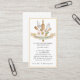 Watercolor baker pastry chef business card featuring a name and title banner and bakers tools with floral touches and a gold border. Whimsical illustrative style.
