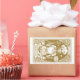 A unique Tarot themed baker, pastry chef sticker or product label, featuring a skeleton with cake and whisk. A unique style with skeleton baker in chef's hat. Gold design with gold type.