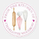 Pretty watercolor "from the kitchen of", featuring whisk, rolling pin and piping bag, round food labels, with classic decorative open face typography. Just add your name. An eye catching style for your baked goods. You may use the simple design tool to change font style and colour of fonts.