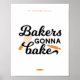 Cute baking quotes "Bakers Gonna Bake" with whisk and rolling pin silhouette art.