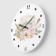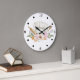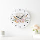 A cute modern watercolor personalised kitchen clock for the baker, featuring baking tools and utensils, chefs hat and floral.